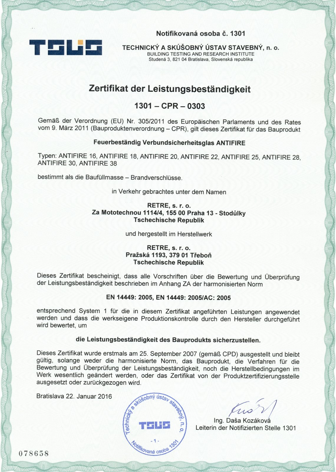 ANTIFIRE® wird durch eine zertifizierte Produktion hergestellt, und entspricht der harmonisierten europäischen Norm.